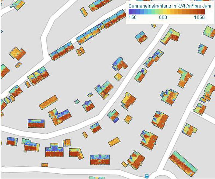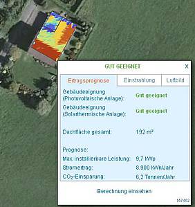 Mit diesem Kataster kann nun jeder Hausbesitzer überprüfen, ob sein Haus für die Nutzung von Photovoltaik (Stromerzeugung) und oder Solarthermie (Wamwassererzeugung) geeignet ist.